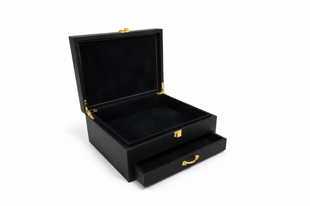 Elevate your corporate gifting with this premium MDF gift box, meticulously wrapped in high-quality PU leather for a refined, professional look. Designed to combine elegance and functionality, this box features a secure top compartment and a smooth pull-out drawer, making it perfect for presenting luxury gift items, accessories, documents, or keepsakes.